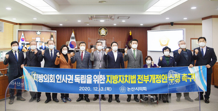 ▲논산시의회는 3일 ‘지방의회 인사권 독립을 위한 지방자치법 전부개정안’ 수정을 촉구하고 있다.(사진=논산시의회 제공) |