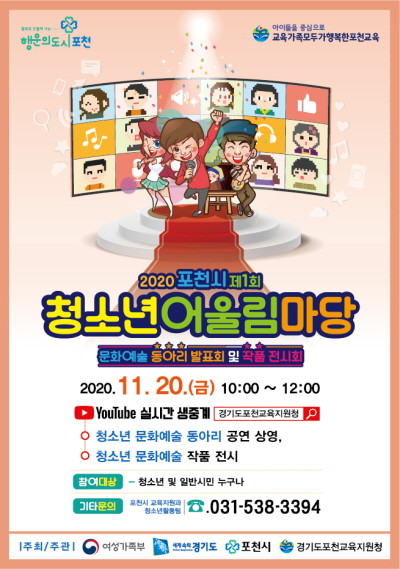 [세계로컬타임즈 신선호 기자] 포천시는 포천시 청소년센터 유튜브 채널을 통해 비대면 ‘2020년 포천시 청소년어울림마당’을 개최한다.