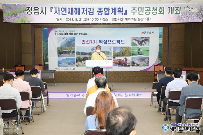 | ▲지난 21일 자연재해저감 종합계획 수립을 위한 공청회를 진행하고 있다(사진=정읍시 제공) |