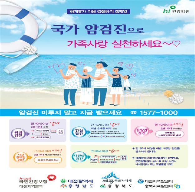 | ▲ 국민건강보험공단 대전지역본부가 '하계휴가기간 이용 검진하기' 캠페인을 실시한다. <포스터 제공=국민건강보험공단 대전지역본부> |