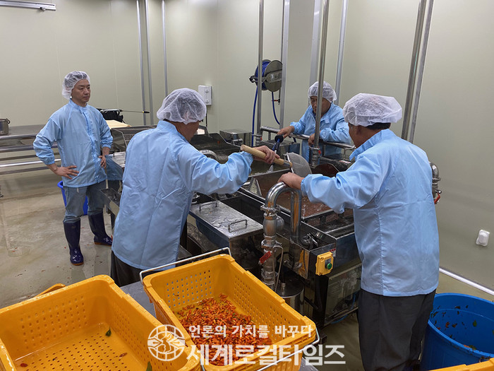 11일 청양군에 따르면 운곡면 소재 특화가공센터 농산물우수관리제도(GAP) 시설에서 청양군 40여 농가가 재배한 생구기자 1톤을 대상으로 시험 가동이 진행되고 있다.