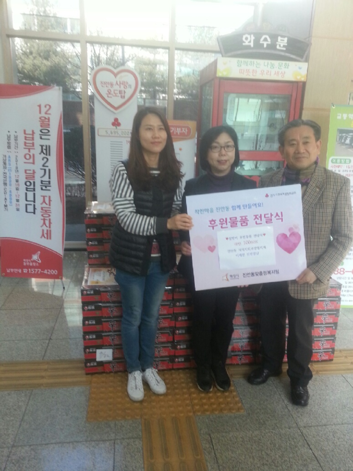 이 위원장은 29일 진안동주민센터에서 양해란 진안동장에게 후원물품을 전달했다.