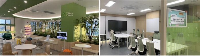 | ▲청년취업사관학교 동대문 캠퍼스 라운지(왼쪽)와 강의실 (사진=서울시) |