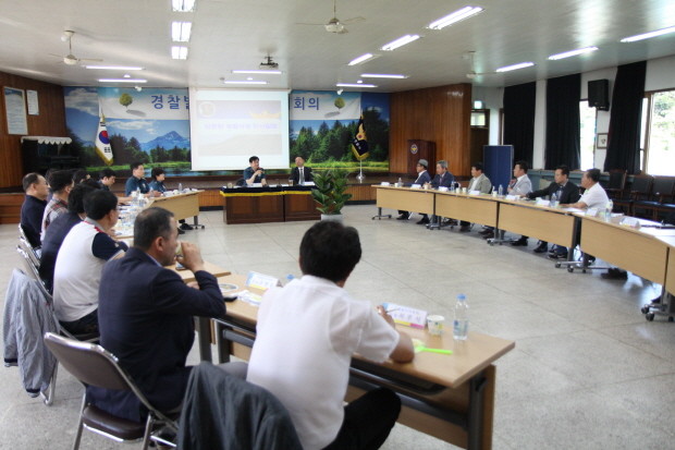 | ▲김충환 남양주경찰서장, 이원근 경찰발전위원회위원장, 위원과 경찰서 과장이 참석한가운데 공동체치안 활성화 정기회의를 열고 있다.<사진제공=남양주경찰서> |