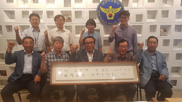 | ▲ 27일 남양주경찰서내에서 진행된 인권진단에 참여한 대한 노인회 위원들이 기념촬영을 하고 있다. <사진제공=남양주경찰서> |