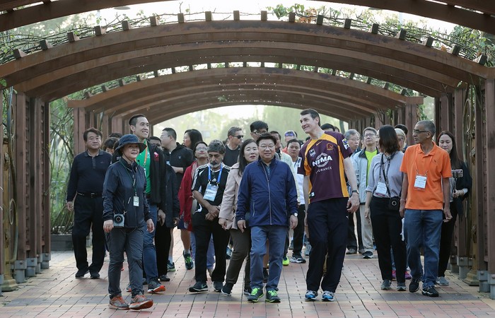 [세계로컬신문 오영균 기자] 권선택 대전시장이 12일 오전 6시부터 그레이엄 쿼크(Graham Quirk) 호주 브리즈번 시장 등 아태도시정상회의 참가자 60여명과 함께 한밭수목원에서 이야기를 나누며 산책하고 있다.