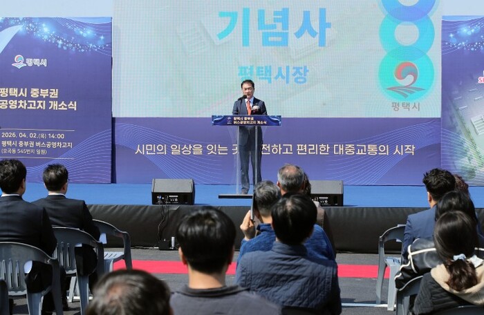 정장선 평택시장은 “중부권 공영차고지 개소는 더 체계적인 대중교통 운영 기반을 마련한 것”이라며 “앞으로도 시민들이 체감할 수 있는 교통 서비스 개선을 지속해 나가겠다”라고 밝혔다.