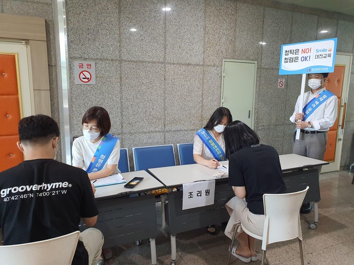 [세계로컬타임즈 민순혜 기자] 대전광역시교육청은 청렴도 도약을 위한 청렴정책을 알리기 위해 5일부터 11일까지 5일간 진행하는 2021 교육공무직원 최종합격자 대상 근로계약서 작성 현장에서 ‘채용현장으로 찾아가는 smile청렴! 캠페인’을 진행하고 있다.