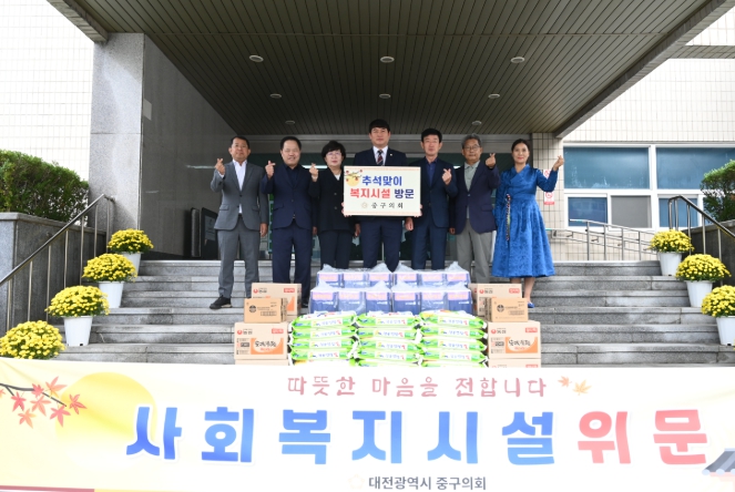 한편, 대전 중구의회는 매년 명절마다 관내 사회복지시설을 방문하여 위문품을 전달하고, 소외계층에 대한 이웃사랑 실천과 나눔문화 확산에 앞장서고 있다.