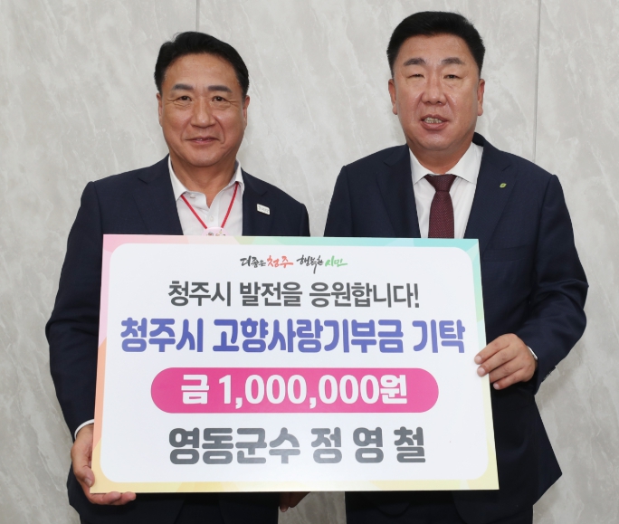정영철 군수는 “고향사랑기부를 통해 청주시의 발전에 작은 힘이나마 보탤 수 있어 기쁘다”며 “오는 9월 12일부터 10월 11일까지 열리는 2025 영동세계국악엑스포에도 청주시민 여러분의 많은 관심과 참여를 부탁드린다”고 말했다.