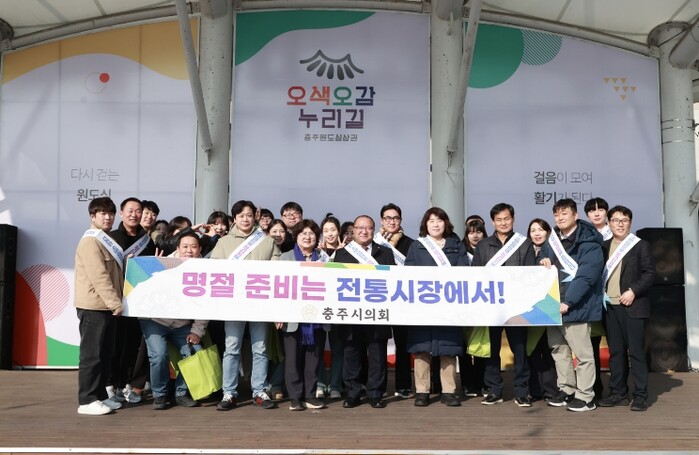 이날 충주시의회 의원 및 사무국 직원 40여 명은 충의시장과 무학시장 등 관내 전통시장 곳곳을 방문해 지역 농산물 등을 직접 구매하며 침체된 전통시장에 힘을 보탰다.