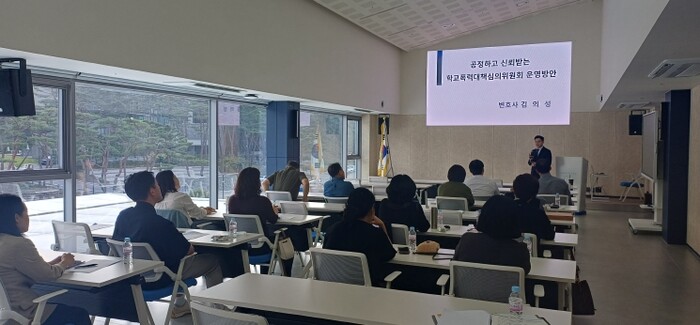 이어 김의성 변호사가 '공정하고 신뢰받는 학교폭력대책심의위원회 운영 방안'을 주제로 특강을 진행해 위원들의 전문성과 역량을 강화하는 시간을 마련했다.또한 섹스폰 연주자 안태건 교수의‘쉼이 있는 힐링공연’이 이어져 위원들이 심리적 재충전과 소통의 시간을 가질 수 있었다.