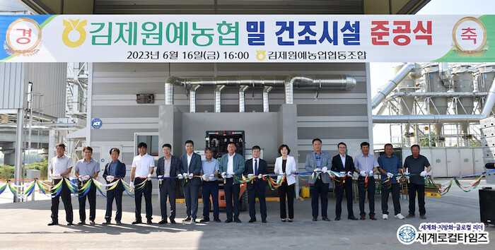 [세계로컬타임즈 조주연 기자] 전북 김제에서 연간 최대 2000톤 처리 규모의 국산밀 건조·저장 시설(DSC)이 준공됐다.