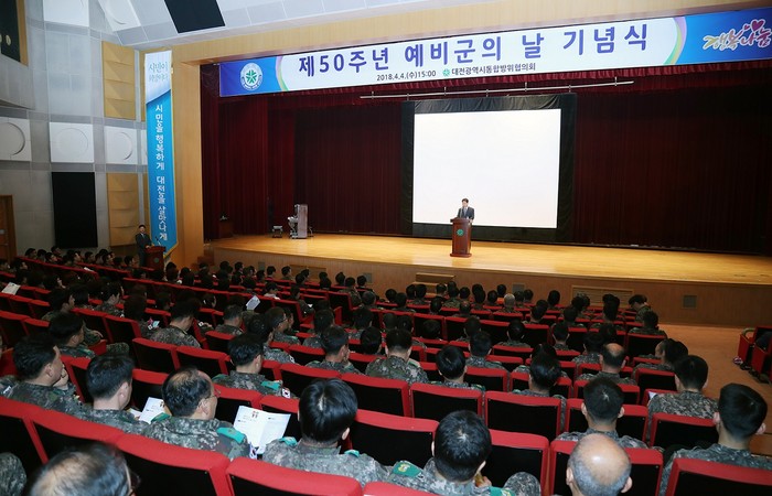 [세계로컬신문 오영균 기자] 대전시가 지역안보 중요성에 따른 예비군 창설 제50주년 기념행사를 시청 대강당에서 가졌다고 4일 밝혔다.