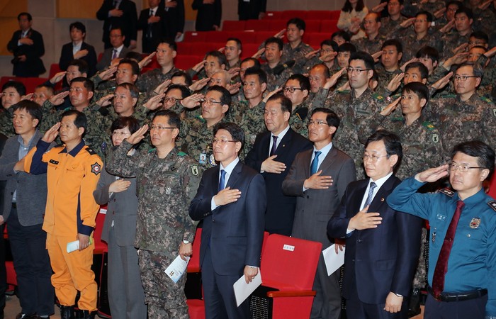 | ▲ 4일 오후 대전시청 대강당에서 예비군 창설 제50주년 기념행사가 진행되고 있다. |