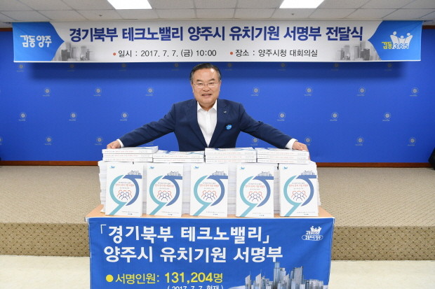 또 양주시는 지난 7월 7일 시민의 염원을 한데 모은 경기북부 테크노밸리 유치기원 서명부 전달식을 개최했다.