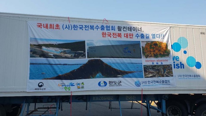 완도군은 지난달 21일 부산항에서 활전복 전용 컨테이너를 이용해 완도산 활전복 1.2톤을 대만으로 수출했다고 밝혔다.