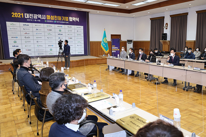 [세계로컬타임즈 민순혜 기자] 대전시는 16일 대전근현대사전시관(구 충남도청) 대회의실에서 여성이 일하기 좋은 기업 환경 조성에 앞장선 2021년 여성친화기업 15곳과 업무협약을 체결했다.