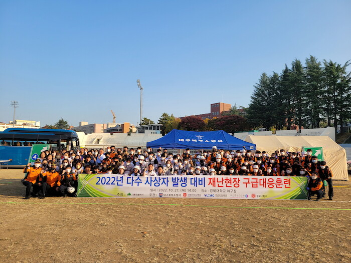 [세계로컬타임즈 이장학 기자] 대구소방안전본부는 27일 경북대학교 야구장에서 ‘2022년 재난현장 구급대응훈련’을 실시했다고 밝혔다.