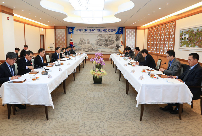 27일 당진시에 따르면 지난 7일 2020년 정부예산 확보 대상 사업과 규모를 확정하는 전략 보고회를 개최한데 이어, 26일에는 어기구 국회의원과 보좌진을 시청으로 초청, 김홍장 시장 주재로 국비 확보방안을 논의하는 간담회를 가졌다.