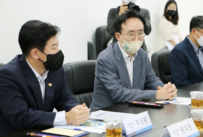 첫 일정으로 한국에너지공과대학교(Kentech·켄텍)를 찾은 윤 시장과 최 차관은 윤의준 총장, 대학 관계자들과 지난 3월 개교한 켄텍의 안정적인 운영을 위한 논의 자리를 가졌다.