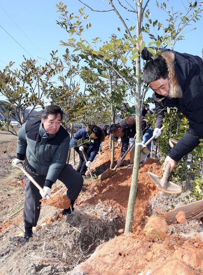 [세계로컬신문 이평래 기자] 이낙연 전남도지사(왼쪽)와 강진원 강진군수가 24일 오후 강진읍 남포마을에서 열린 숲속의 전남 만들기 2017년 첫 나무심기 행사에서 구실잣나무를 심고 있다. 이날 나무심기는 18년 전라도 정도(定道) 천년을 맞아 이를 기념하는 전라도 천년 가로수길 조성과 나무심는 시기를 알리기 위해 구실잣밤나무 200여 그루를 식재했다.<사진제공=전남도청>