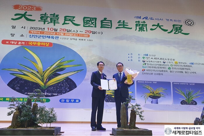 [세계로컬타임즈 김명진 기자] 신안군이 주최하고 (사)대한민국자생란협회가 주관한 ‘2023 대한민국 자생란 대전’이 지난 10월 28일부터 29일까지 이틀간 1,500여 점의 다양한 희귀 자생란들을 선보이며 1004섬 신안에서 성황리에 마무리되었다.