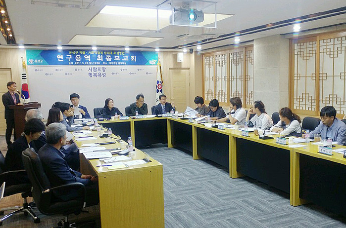 [세계로컬신문 라안일 기자] 대전시 유성구는 22일 구청 중회의실에서 ‘마을·사회적경제 생태계 조성방안 연구용역’ 최종보고회를 열었다.