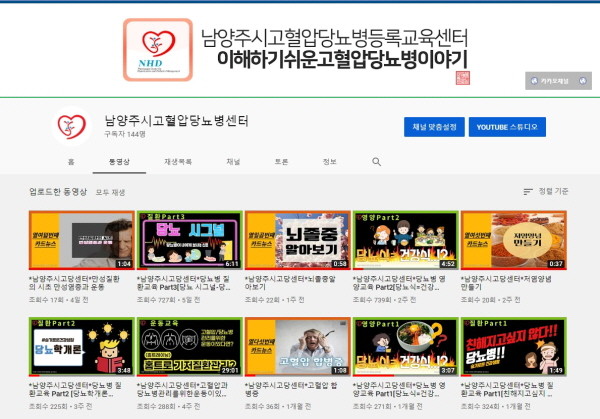 남양주보건소 관계자는“유튜브 채널을 통해 고혈압·당뇨병 관련 교육컨텐츠를 순차적으로 제공할 방침이라며 시민들이 시간과 장소에 구애받지 않고 만성질환을 관리할 수 있도록 적극 지원하겠다”고 말했다.