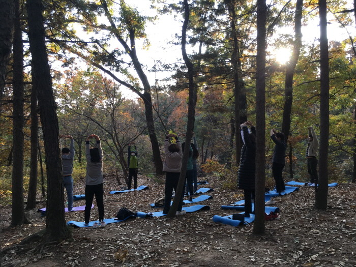 | ▲명상과 이완요법 가미한 ‘불곡산 둘레길 숲 해설’ 등 통해 스트레스 관리법 배우는 시간을 보내고 있다. (사진=양주시청 제공) |