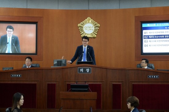 장 신임 의장은 당선 인사를 통해 "부족한 저를 의장으로 선출해 준 선배 동료의원 여러분께 진심으로 감사드린다"며 "의원 여러분의 힘과 지혜를 모아 소통 잘하고 봉사 잘하고 일 잘하는 반가운 오산시의회를 만들어 나가겠다"고 포부를 밝혔다.
