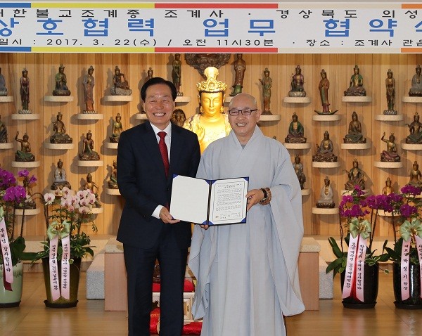 이날 협약식에는 김주수 의성군수와 조계사 주지 지현스님을 비롯한 관계자들이 참석했다.