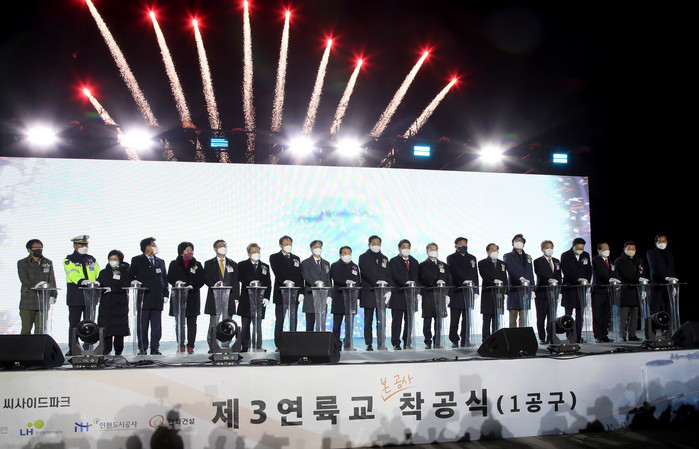 [세계로컬타임즈 한창세 기자] 영종·청라국제도시 지역주민과 인천시민의 오랜 숙원사업인 영종~청라 연결도로 (제3연륙교) 건설공사 착공식이 지난 22일 인천 중구 영종국제도시 씨사이드파크 야외무대에서 개최됐다.