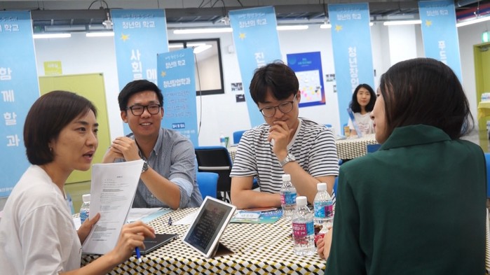| ▲ 대전시 청녀들이 만든 '청년의 학교'에서 그룹별 토의가 진행되고 있다. |