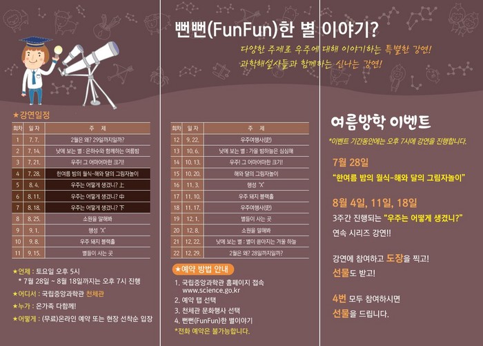 | ▲ 오는 7일부터 매주 토요일마다 국립중앙과학관 천체관에서 진행되는 '뻔뻔(Fun Fun)한 별 이야기' 리플렛. <리플렛 제공= 국립중앙과학관> |