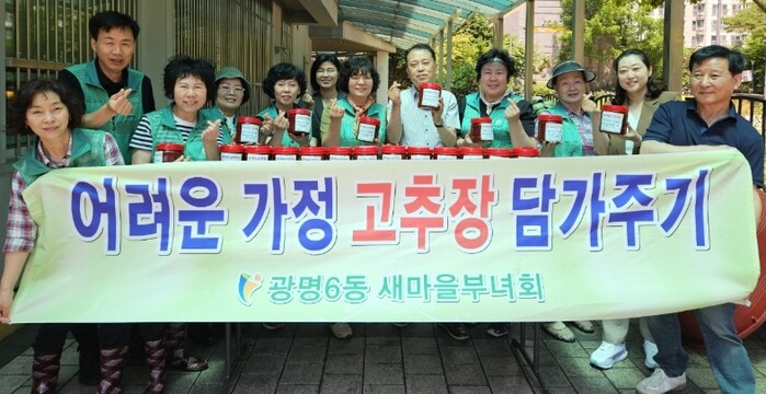 이날 행사에는 새마을지도자협의회와 부녀회원 10여 명은 직접 고추장을 담갔으며, 정성껏 만든 고추장은 광명6동의 소외계층 45가구에 전달됐다.