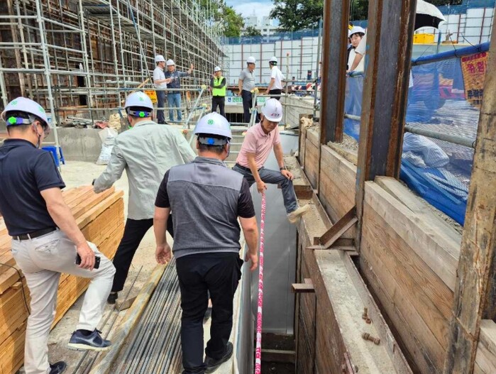 점검단은 외벽 방수공사, 1층 철근 배근 및 지하주차장 콘크리트 시공 상태 등 주요 구조부 결함 및 하자 발생 우려 부분을 집중적으로 점검했다.