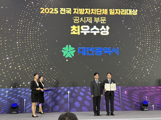 [세계로컬타임즈] 대전시는 30일 청주 오스코에서 열린 고용노동부 주관 ‘2025 전국 지방자치단체 일자리대상’ 시상식에서 ▲일자리 공시제 부문 최우수상 ▲우수사업 부문 우수상을 동시에 받으며 4년 연속 수상의 영예를 안았다.