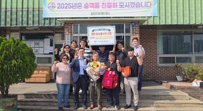 시는 이날 삼안여객 소속 승무원 최수일(57) 씨를 이달의 칭찬운수종사자로 선정하고 친절수당 50만 원을 지급했다.