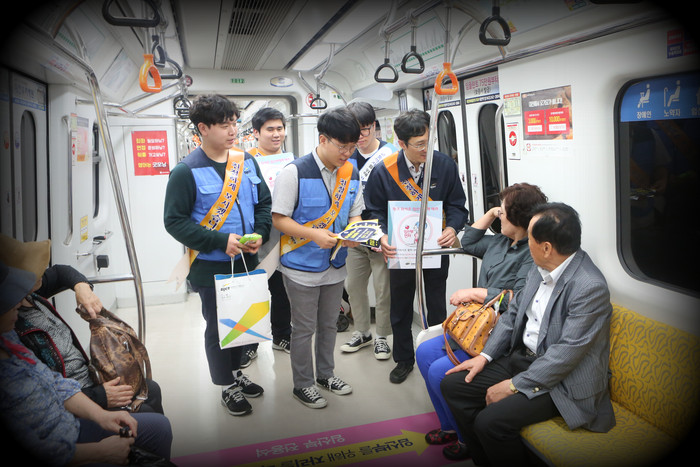 이날 공사는 대전역~시청역 구간에서 임산부석을 알리는 안내문을 나눠주면서 임산부에 대한 관심과 자리 양보를 당부했다.