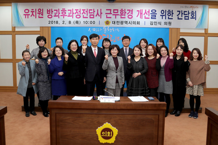 김인식 대전시의회 의원(서구 3, 더불어민주당)은 8일 대전시의회 대회의실에서 유치원 방과후과정의 질적확보를 위한 방과후과정전담사와 교육과정 교사, 대전시교육청 관계자 등이 모여 간담회를 개최했다.