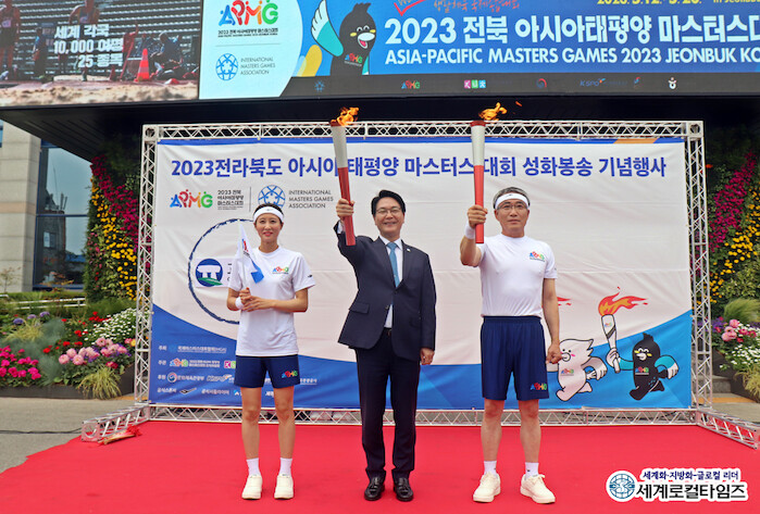 [세계로컬타임즈 조주연 기자] ‘2023 전북 아시아·태평양 마스터스 대회’가 개막한 가운데 유도 경기가 펼쳐질 전북 고창군에 성화가 도착했다.