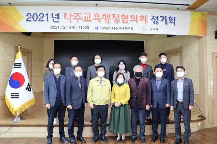 [세계로컬타임즈 강석운 기자] 나주교육지원청과 나주시청은 12월 1일 나주교육지원청 대회의실에서 교육정책의 상호 협력과 참여를 통하여 나주교육의 발전적 방향 모색을 위한 '2021년 나주교육행정협의회 정기회'를 개최했다.