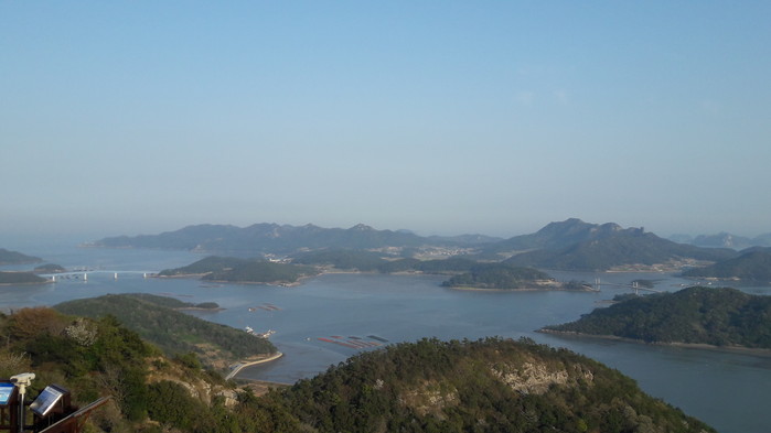 | ▲상·하조도 전경. 상조도 도리산전망대에서 바라본 상·하조도 풍경. 오른쪽으로 보이는 다리가 조도대교이며, 왼쪽 섬 사이의 교량이 나배대교다.(사진=서해해경) |