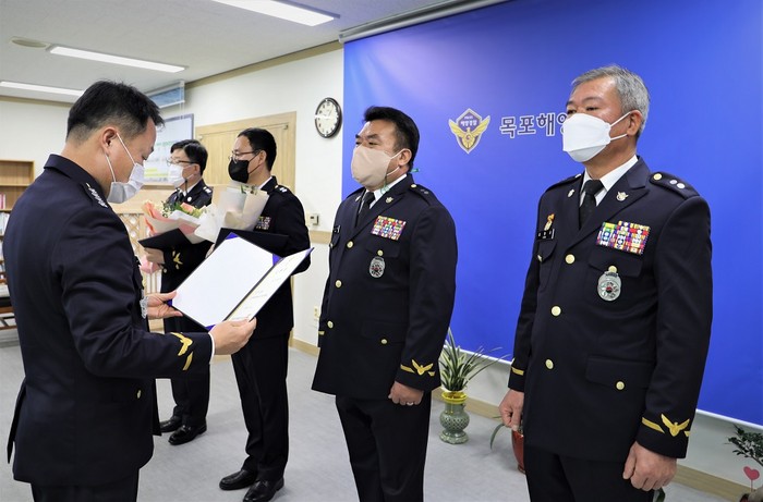 이번 임용식은 1월 1일자 경위에서 경감으로 근속 승진하는 목포해양경찰서 소속 경찰공무원 15명이며 당일 경비함정 출동 및 파출소 근무자를 제외한 4명을 대상으로 코로나19 방역수칙을 준수한 가운데 간소하게 실시됐다.