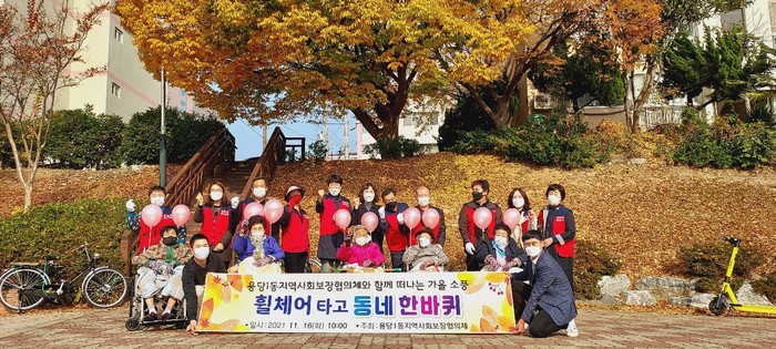 거동불편 어르신 5명을 비롯해 협의체 위원, 동 직원, 봉사자 등 총 25명이 함께 한 이번 행사는 휠체어를 탄 어르신과 동행하며 웰빙공원을 산책했다.