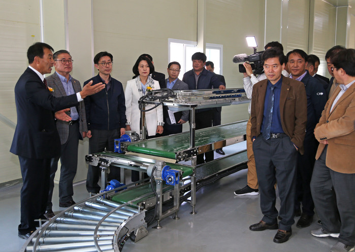 | ▲ 17일 충남 당진시 송산면 아궁이마을이 고구마 가공유통센터 개소식을 열었다. 사진은 관계자들이 시설을 둘러보고 있는 모습. |