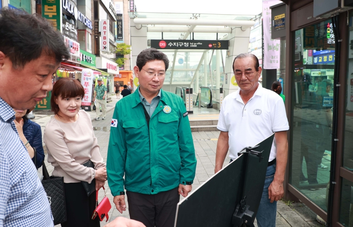 이 시장은 정평중학교 앞 버스정류장에 내려 정류장 주변을 둘러보고 나서 “가로수 뿌리 때문인지 보도블록 일부가 조금 솟아오른 상태이니 시민들이 걸려 넘어지지 않도록 정비해 달라”고 수지구청 관계자들에게 지시했다.