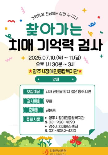 시 관계자는 “장애인을 위한 치매 선별검사 접근성을 높이고, 조기 발견 및 예방에 주력할 수 있도록 앞으로도 다양한 연계 프로그램을 지속적으로 추진하겠다”고 말했다.