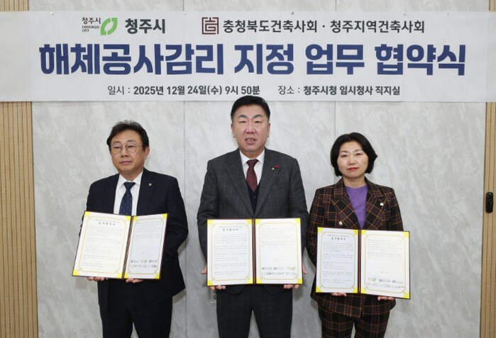이범석 청주시장은 “이번 협약은 시민의 생명과 재산을 보호하기 위한 민관 협력의 모범 사례가 될 것”이라며 “앞으로도 건축사협회와 지속적으로 소통하며 안전한 도시 청주를 만드는 데 최선을 다하겠다”고 밝혔다.